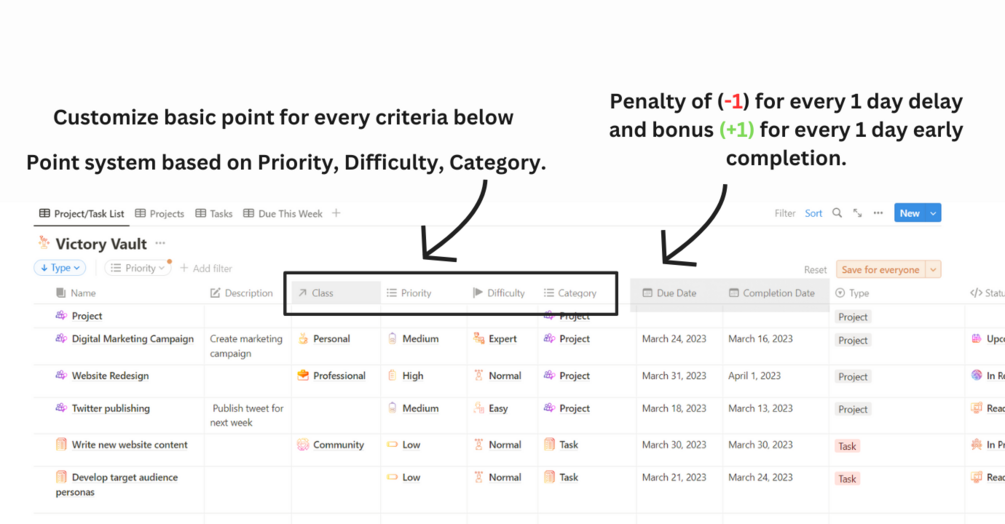This template is exactly about gamifying the system and get the points and diamonds for every task and every project you accomplish.